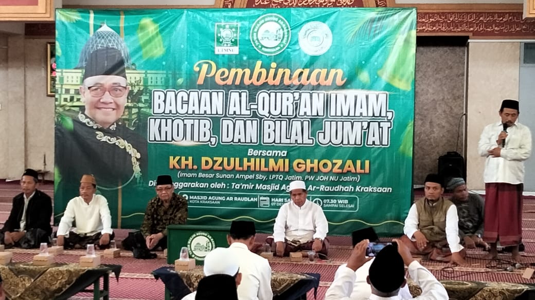 Takmir Masjid Agung Ar-Raudlah Kraksaan bekerjasama dengan Lembaga Takmir Masjid Nahdlatul Ulama (LTMNU) dan Jam’iyyatul Qurra’ wal Huffazh Nahdlatul Ulama (JQHNU) Pengurus Cabang Nahdlatul Ulama (PCNU) Kota Kraksaan mengadakan Pembinaan Bacaan Al-Qur’an bagi Imam, Khotib, dan Bilal Jum’at di Masjid Agung Ar-Raudlah, Jalan Rengganis Nomor 1 Kota Kraksaan.