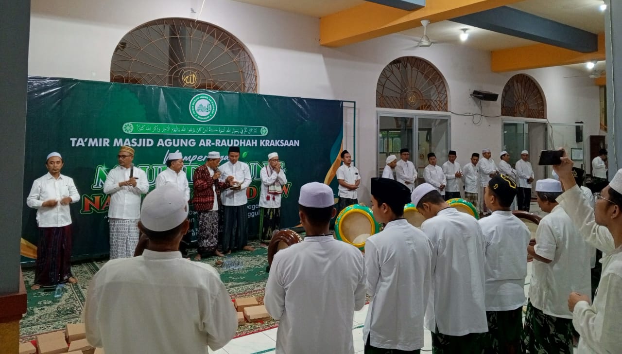Kraksaan, 15 Nopember 2024 – Ratusan jamaah memadati serambi Masjid Agung Ar-Raudlah, Jalan Rengganis Nomor 1 Kota Kraksaan, pada Ahad (15/9/2024) malam untuk mengikuti Peringatan Maulid Nabi Muhammad SAW 1446 H. Acara yang dimulai setelah salat Isya tersebut berlangsung khidmat dengan diiringi lantunan sholawat oleh grup Hadrah dari Remaja Masjid.