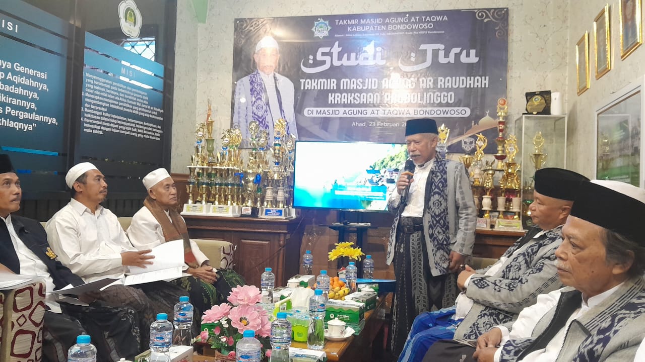 Rombongan Takmir Masjid Agung Ar-Raudlah Kraksaan melakukan studi tiru ke Masjid Agung At-Taqwa Jl. Hos Cokroaminoto nomor 45 Kademangan, Bondowoso pada Ahad (23/2/2025). Kunjungan ini bertujuan untuk memperdalam wawasan dan meningkatkan kualitas pengelolaan masjid, serta mempererat silaturahmi antar pengurus masjid.